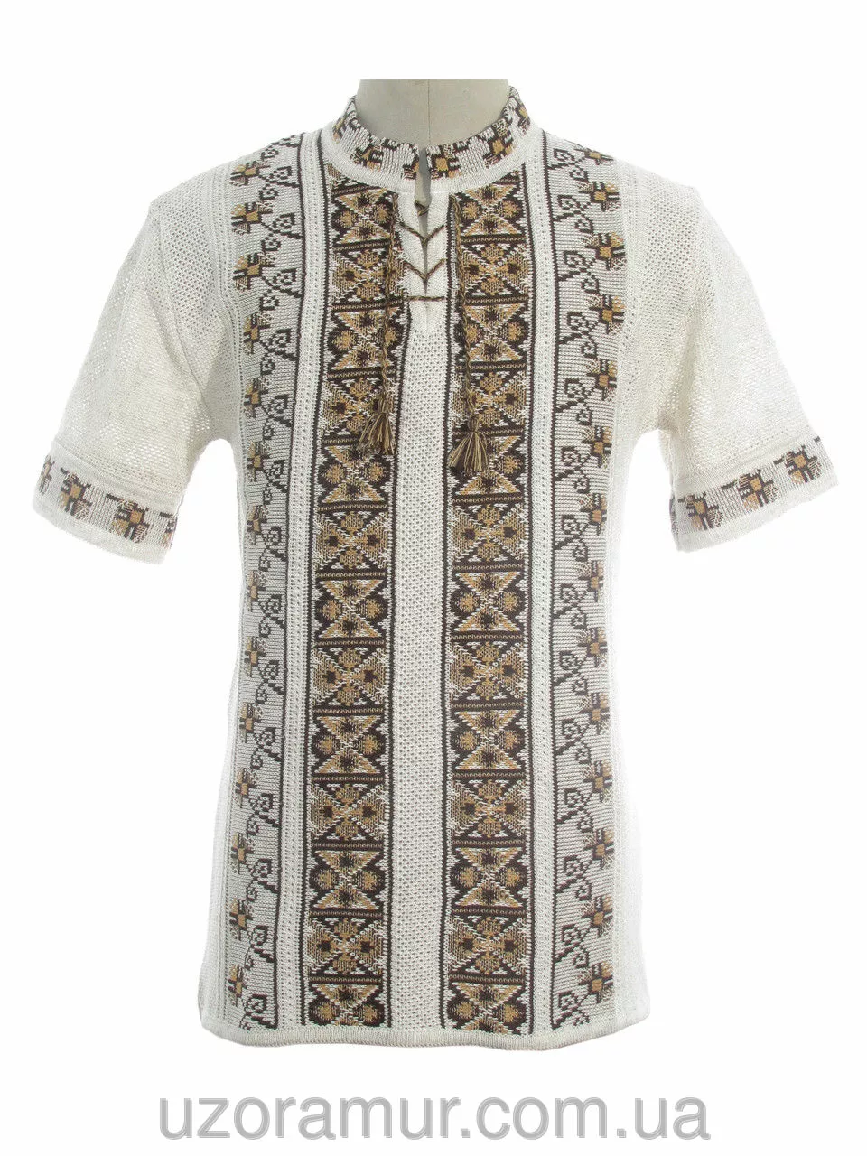 Чоловіча вишиванка на літо з коричневим візерунком