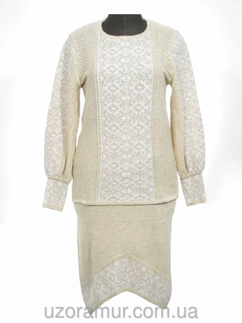 Жіночий в'язаний костюм Ромби білі